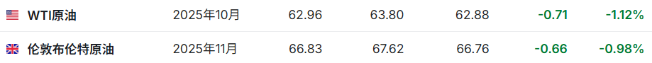 3. 截至发稿,WTI原油跌1.12%,报62.96美元/桶。布伦特原油跌0.98%,报66.83美元/桶。